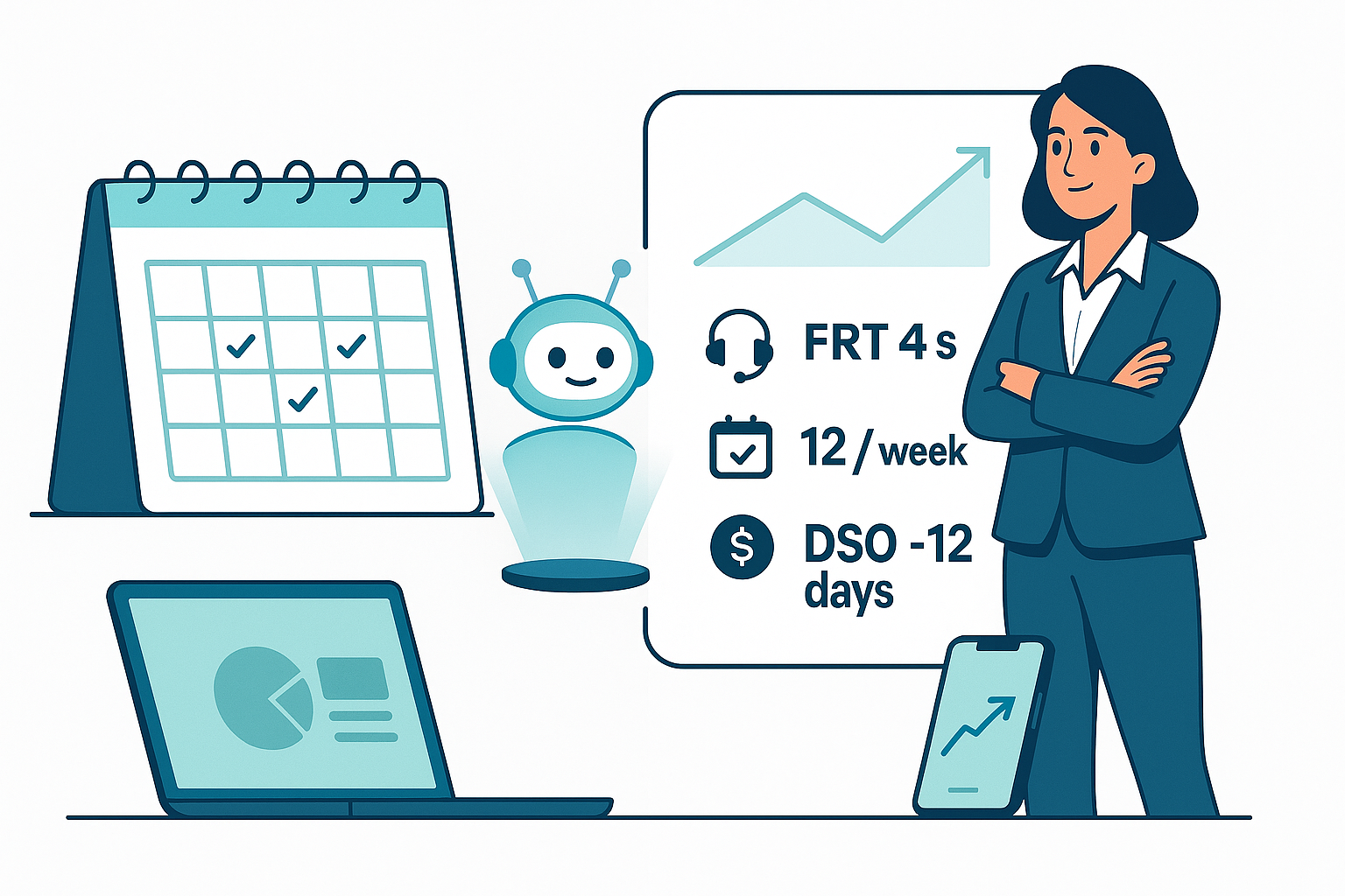 Côté ventes, le taux de réponse gagne plus de dix points, l’équipe cale une douzaine de rendez-vous qualifiés par semaine, les no-shows reculent grâce aux rappels.